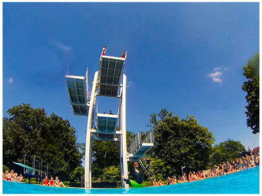 Oder im Freischwimmerkanal. Oder bei einer Brotzeit am Kiosk. Oder, oder, oder… Genießen Sie unser riesiges und attraktives Außenareal – denn zum Genießen ist es da. Nicht umsonst vergnügen sich jede Saison rund 100.000 Badegäste im Nichtschwimmerbecken, im Sportbecken und im Springerbecken: Unsere beheizte Beckenfläche von 3.098 m² verspricht puren Badespaß.